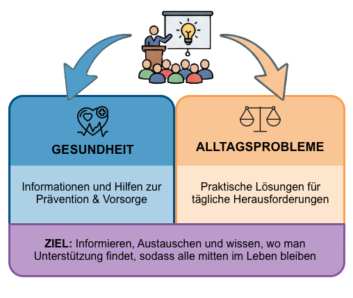 Organisation von Infoabenden rund um die Themen Gesundheit und Alltagsprobleme.